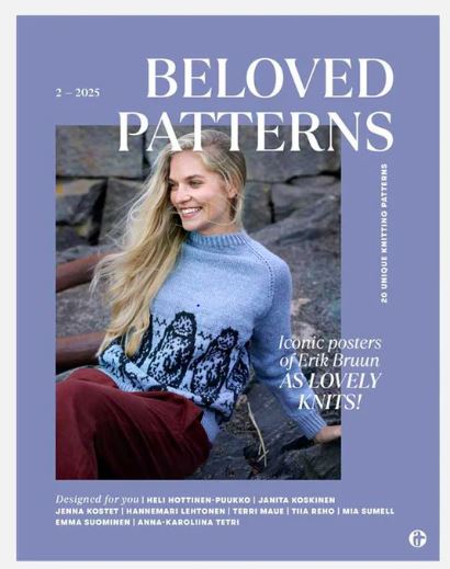 Beloved Patterns 2/2025 is a stunning knitting magazine from A-lehdet / Kotivinkki, inspired by the most famous Finnish graphic designer Erik Bruun’s iconic posters. This 124-page magazine features 20 unique and never-before-published knitting patterns.