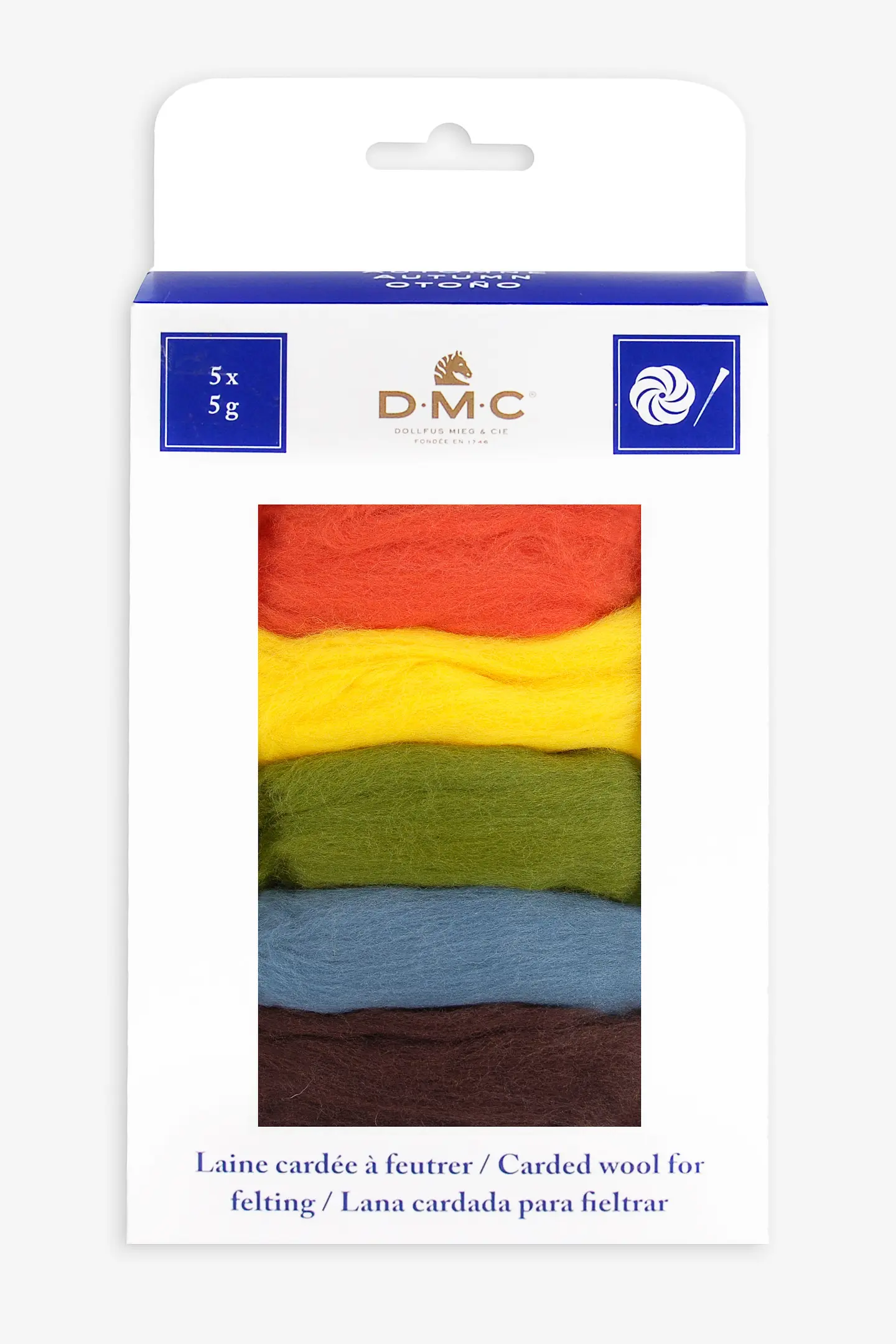 Lã cardada para feltragem, pack de 5 mechas – outono